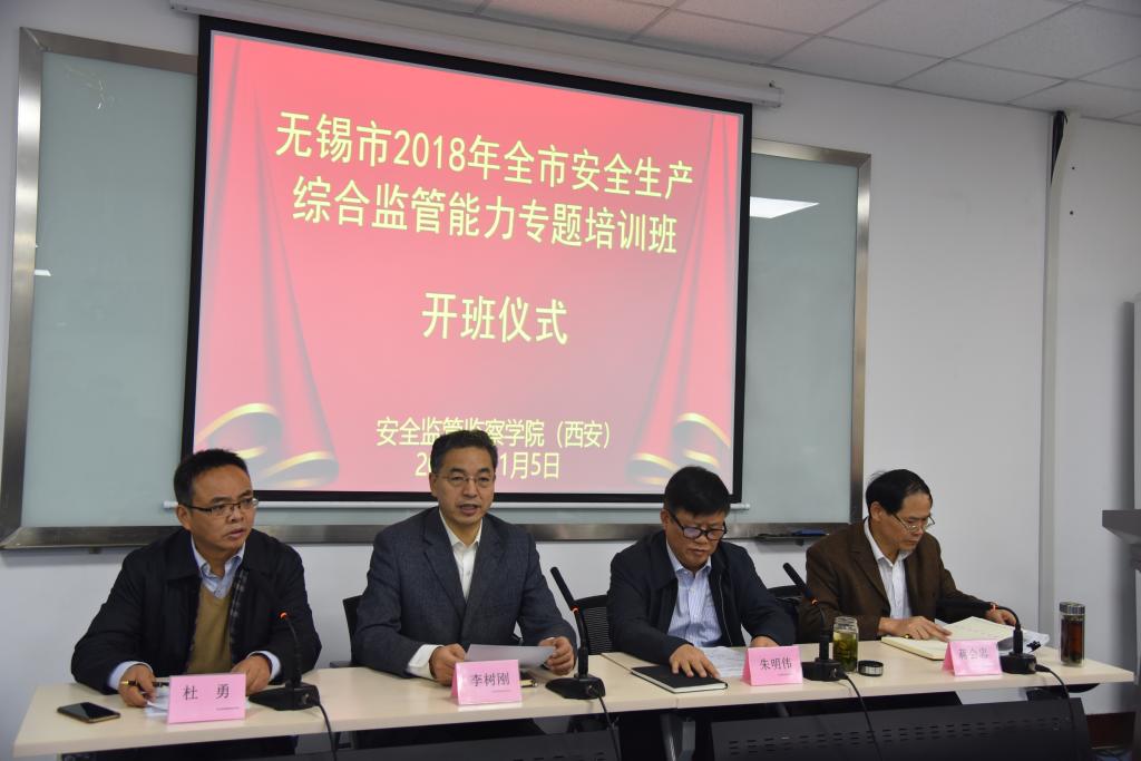 李树刚代表学校对全体学员表示热烈欢迎,并向学员们介绍了学校概况、办学特色及安全监管监察干部培训的开展情况,希望通过此次培训能够搭建起西安科技大学与无锡市安委会之间的桥梁。朱明伟对学校的精心准备表示感谢,要求全体学员要迅速转变身份,珍惜机会,不负重托,遵守纪律,学有所思,学有所得,学有所成,切实提高全市安全生产水平。