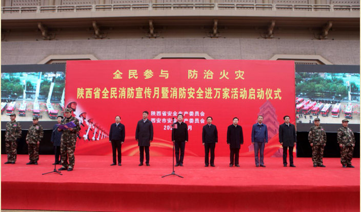 11月6日,在全国第27个“119”消防日即将来临之际,陕西省安全生产委员会、西安市安全生产委员会在西安大明宫遗址公园丹凤门广场联合举办了“陕西省全民消防宣传月暨消防安全进万家活动”启动仪式,同步举办了全省消防能力建设成果展和消防科技成果展。省委常委、常务副省长梁桂,省政府副秘书长夏晓中、省应急管理厅厅长胡保存、省公安厅副厅长杜清江、省财政厅副厅长王范儒、省发展改革委固定资产投资办公室主任常保平、西安市常务副市长等省市领导和有关部门负责同志出席仪式。西安市部分企事业单位职工群众、消防志愿者代表1000余人参加了启动仪式。省应急管理厅厅长胡保存主持了启动仪式。我校安全学院应邀参加了本次活动,向参会人员展示了我校消防工程专业近些年在教学科研和实验平台建设等方面取得的成果。