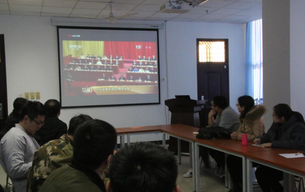 为庆祝改革开放40周年,学习和了解改革开放以来的光辉历程和实践成果,12月18日上午10:00,12月18日安全学院在雁塔校区1508组织研究生党员开展了观看了中共中央、国务院召开庆祝改革开放40周年大会直播观影活动。学院部分教师及博硕士研究生党员共70余人参加了大会。