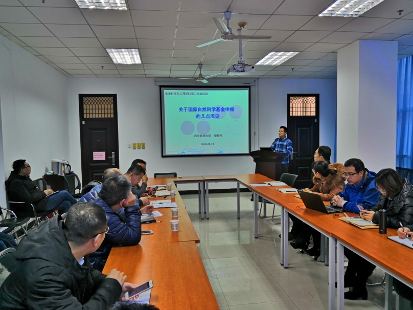 本次交流会特别邀请了我校建工学院优秀青年教师、陕西省“特支计划”青年拔尖人才申艳军副教授做基金申报经验交流,他结合自己申报和评审国家自然科学基金的经验,以“关于国家自然科学基金申报的几点浅见”为主题,从基金题目选定、摘要撰写、立项依据、参考文献、研究内容、拟解决关键问题、研究方案、可行性分析、项目特色与创新、年度研究计划及预期研究结果、研究基础等方面进行了讲解,并对相关老师申报过程中存在的具体问题进行了解答交流。