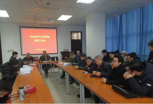 1月10日下午,安全科学与工程学院在雁塔校区学院会议室召开了全体教职工大会,讨论和审议《安全科学与工程学院绩效工资分配办法》。学院党委书记杜勇、院长邓军等领导班子成员出席了本次会议,学院全体教职员工参加会议。大会由学院工会主席王建国主持。