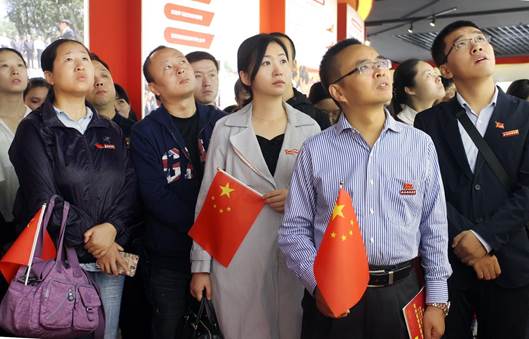 早上9点,安全学院参观团到达展馆。师生们胸前统一佩戴党员徽章和校徽,人人手中挥舞着国旗,一下子为展览现场增添了许多亮点。大家边走边看,仔细聆听讲解员的讲解,还有不少同学,时不时拿出手机把自己感兴趣的图片拍照留存。