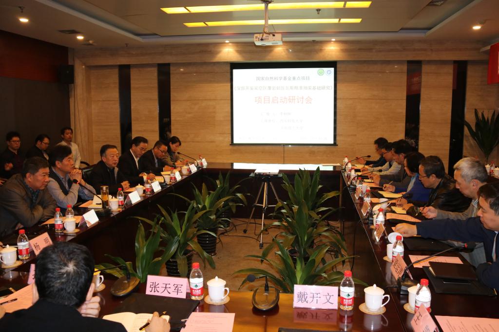10月28日,由西安科技大学李树刚教授牵头、联合河南理工大学高建良教授共同承担的国家自然科学基金重点项目《深部开采采空区覆岩卸压瓦斯精准抽采基础研究》项目启动。启动研讨会在西安邀请到辽宁工程技术大学校长梁冰教授、北京科技大学何学秋教授、中国矿业大学林柏泉教授、武汉理工大学资源与环境工程学院院长宋少先教授、中煤科工集团沈阳研究院国家重点实验室副主任梁运涛教授、中国矿业大学(北京)资源与安全工程学院副院长王凯教授、中国矿业大学(北京)聂百胜教授、陕煤化工技术研究院科研管理部部长宋飞高工等国内知名专家参加,参加会议的还有西安科技大学副校长马宏伟、李树刚河南理工大学安全科学与工程学院党委书记高建良、副院长杨明,西安科技大学科技处处长来兴平,理学院党委书记兼研究院常务副院长孙湘红、科技处副处长戴开文、安全学院党委书记杜勇及副院长罗振敏、林海飞、曹鸿及项目组全体人员和部分师生参加会议。研讨会由科技处处长来兴平主持。