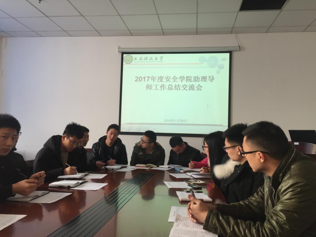 1月20日上午,安全学院召开2017年度助理导师工作总结交流会。院党委书记杜勇,副书记田园,副院长罗振敏,辅导员及助理导师参加了会议。