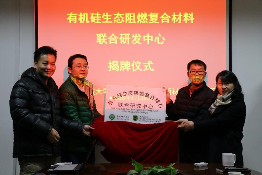 揭牌仪式上,谢朝晖董事长向与会人员介绍了公司的基本情况和本项目的重大意义。谢朝晖指出,有机硅材料安全可靠、绿色环保、耐高低温、耐老化且使用寿命长,具有广阔的应用前景,有机硅阻燃研究目前尚属于国内研究的一个空白,具有重大发展前景,大有可为。他鼓励大家勇于尝试、勇于创新,不断取得新的突破。