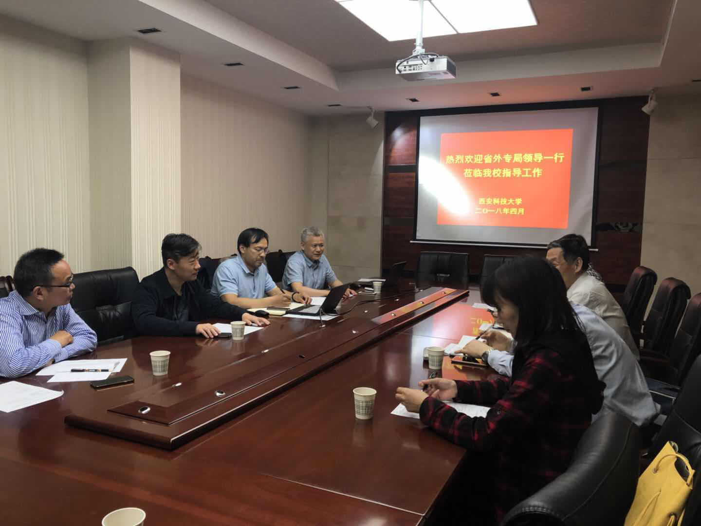 4月19日下午,陕西省人社厅副巡视员、省外专局副局长左长存,省外专局交流与合作处处长张文华等一行4人来校调研我校申报的“矿井热动力灾害防控”111引智基地筹备申报工作。