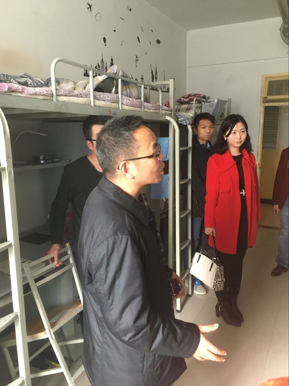 2月27日下午,学院党委书记杜勇、各年级辅导员走访了学院学生宿舍楼,仔细检查了宿舍楼的安全情况并给学生带去了新学期的问候。