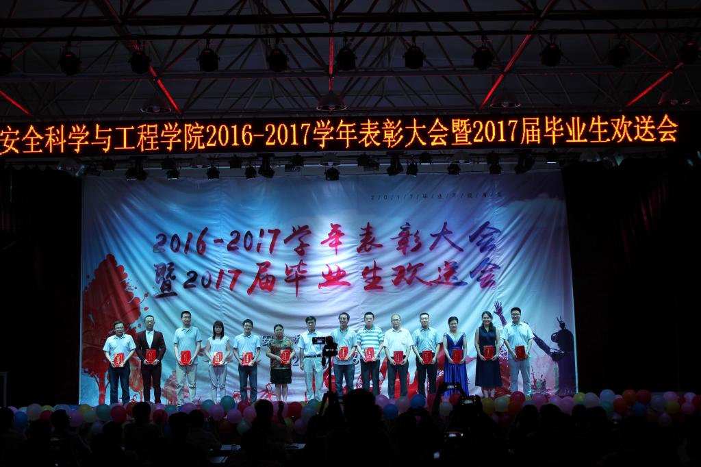 表彰大会上,李树刚副校长和学院领导、教授分别对2016-2017学年学院优秀党员、先进工作者、讲课比赛获奖教师和在陕西省“挑战杯”科技作品竞赛、学院安全设计大赛、消防设计大赛中获奖的学生、优秀毕业论文的学生颁发了证书,希望毕业生能传承胡杨精神,立地顶天,开辟属于安全人的新天地!