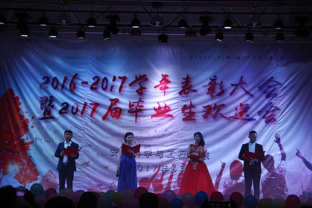 6月20日晚,安全学院在临潼校区第二俱乐部举办“2016-1617学年表彰大会暨2017届毕业生欢送会。副校长、安全学院执行院长李树刚教授,学院党政负责人、教师代表,全体受表彰师生及2017届研究生和本科生毕业生参加了晚会。在我校参加安监培训的宁夏煤监局和长武煤管局的安全生产培训班学员应邀出席晚会。