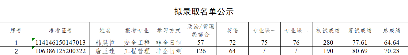 安全科学与工程学院2026年硕士研究生招生调剂志愿(第二批)拟录取结果公示