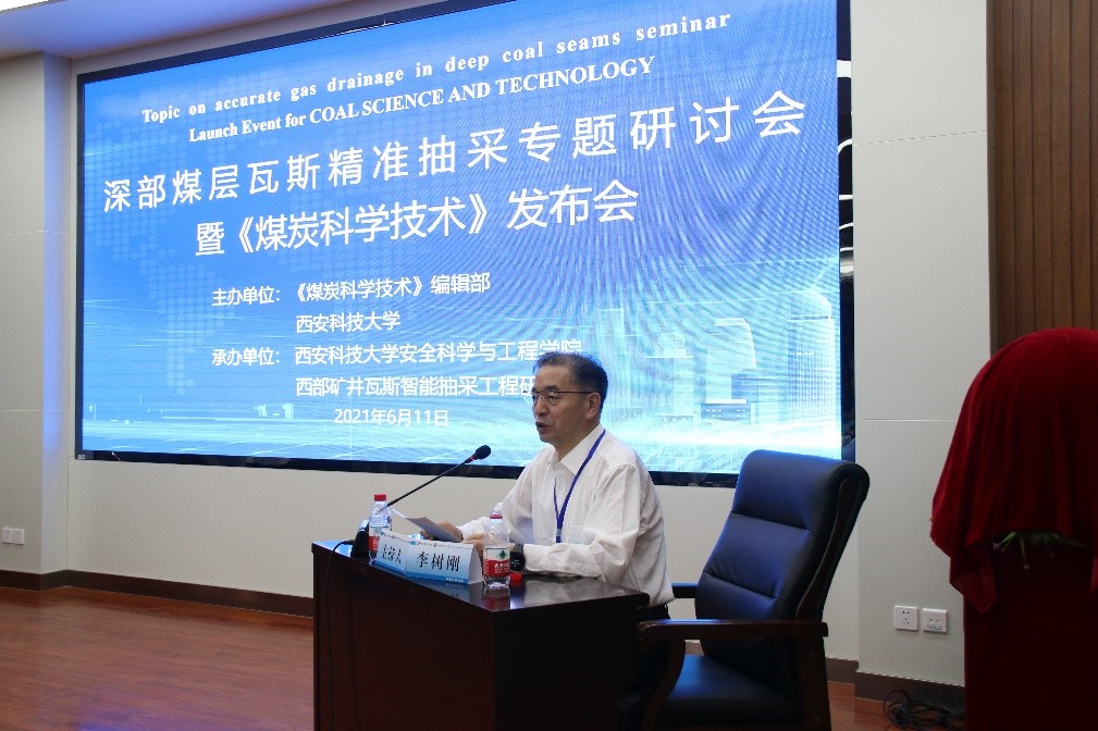 2021年6月11日,由《煤炭科学技术》编辑部和西安科技大学主办,安全科学与工程学院,煤炭行业西部矿井瓦斯智能抽采工程研究中心承办的“深部煤层瓦斯精准抽采”学术研讨会暨《煤炭科学技术》专题发布会在西安科技大学雁塔校区图书馆会议室采用线下+线上模式顺利召开。由西安科技大学王双明院士、校长来兴平教授、原副校长李树刚教授,煤炭科学研究总院院长助理、出版传媒集团总经理、《煤炭科学技术》执行主编朱拴成编审共同点亮会议启动专题发布球。中国矿业大学、河南理工大学、湖南科技大学、中国矿业大学(北京)、辽宁工程技术大学、中国煤炭科工集团西安研究院、国家能源投资集团有限责任公司、陕西煤业化工技术研究院、陕西省煤炭科学研究所以及我校等十余家高校、科研院所和企业的50余位专家现场参加会议,并通过中国知网、科创中国直播平台进行了会议全程直播,吸引了全国5000余人次在线观看。会议由科技处处长文虎教授主持。