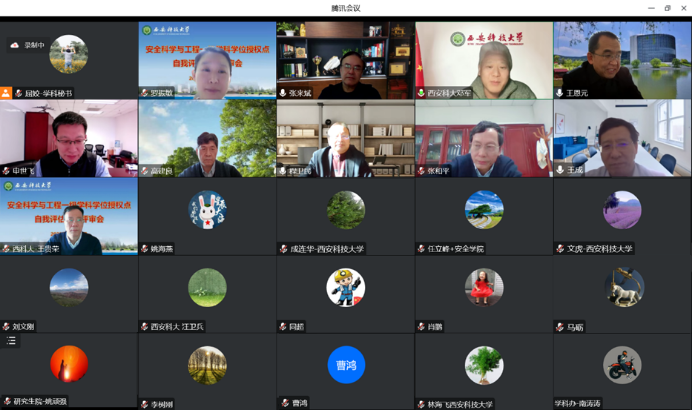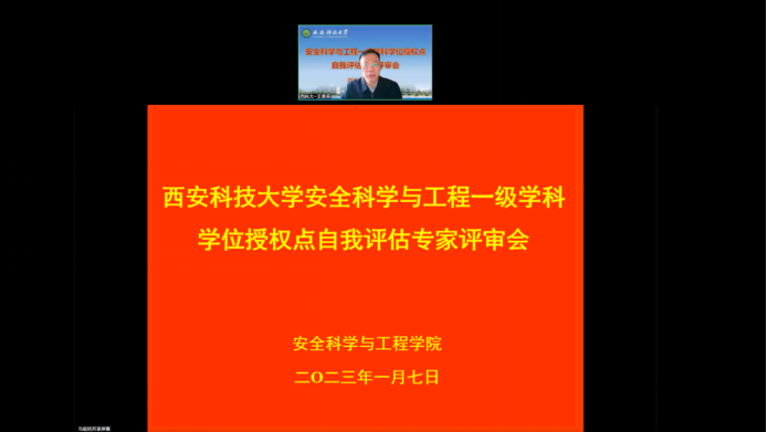 2023年1月7日上午,西安科技大学安全科学与工程一级学科学位授权点自我评估专家评审会以线上会议的形式召开。7位来自国内安全领域的知名教授组成了评估专家组,中国工程院院士、国务院学位委员会学科评议组召集人、中国石油大学(北京)原校长张来斌教授担任专家组组长,专家组成员由国务院学位委员会学科评议组秘书长、中国科学技术大学火灾科学国家重点实验室党委书记张和平教授,国务院学位委员会学科评议组成员、河南理工大学安全科学与工程学院党委书记高建良教授,国务院学位委员会学科评议组成员、北京理工大学爆炸科学与技术国家重点实验室主任王成教授,公共安全科学技术学会秘书长、清华大学公共安全研究院副院长申世飞教授,中国矿业大学(徐州)安全工程学院院长王恩元教授,山东科技大学安全与环境工程学院院长程卫民教授组成。我校副校长王贵荣、邓军,原副校长李树刚,组织部、学科建设办公室、研究生院负责人,安全学院领导班子成员和教师代表参加了会议。
