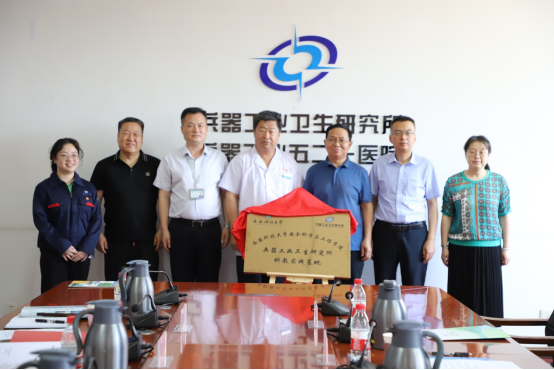 为深入学习贯彻习近平新时代中国特色社会主义思想,落实立德树人根本任务,完善科教协同育人机制,搭建校企协同育人平台, 6月13日下午,安全学院党委书记刘文刚、副院长成连华、安全工程系副主任易欣一行到兵器工业卫生研究所举行“人才联合培养基地” 及 “科教实践基地”揭牌仪式。揭牌仪式由董国强主持。兵器工业卫生研究所科技委主任郭永明、职业安全与健康中心主任董国强、职业安全卫生管理处副处长梁馨月、职业安全与健康中心副主任刘亚杰、相关技术人员参加会议。