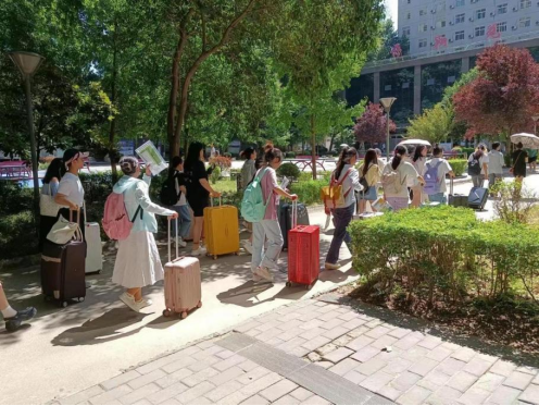图4学院研究生会的学生干部接待营员前往宿舍