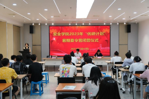 7月19日上午,安全学院在雁塔校区北院举办2023年暑期“优研计划”活动闭营仪式。学院行政副院长曹鸿、研究生导师代表屈姣、研究生培养办公室主任姚海燕参加了闭营仪式。