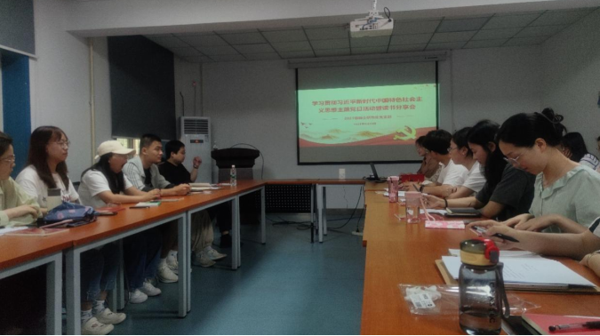 6月20日上午,2021级硕士研究生党支部在雁塔校区北院学科楼205会议室召开学习贯彻习近平新时代中国特色社会主义思想主题党日暨读书分享会。会议由支部书记胡丽红主持。分管研究生工作的副院长肖鹏应邀参加了会议。