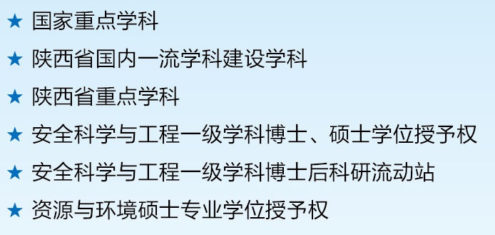 西安科技大学安全科学与工程学科源于1938年成立的西北工学院矿冶系矿井通风组,1984年设立矿山通风与安全专业,是我国最早设立安全学科专业的高校之一、首批两个安全类国家重点学科之一。2016年4月,依托我校安全科学与工程国家重点学科成立安全科学与工程学院。2016年10月,原国家安全生产监督管理总局批复设立安全监管监察学院(西安),与安全学院合署办公;2019年应急管理部与陕西省人民政府共建西安科技大学及安全学科,西安市人民政府、陕西省教育厅和陕西省应急管理厅签约共建西安科技大学安全科学与工程学院。
